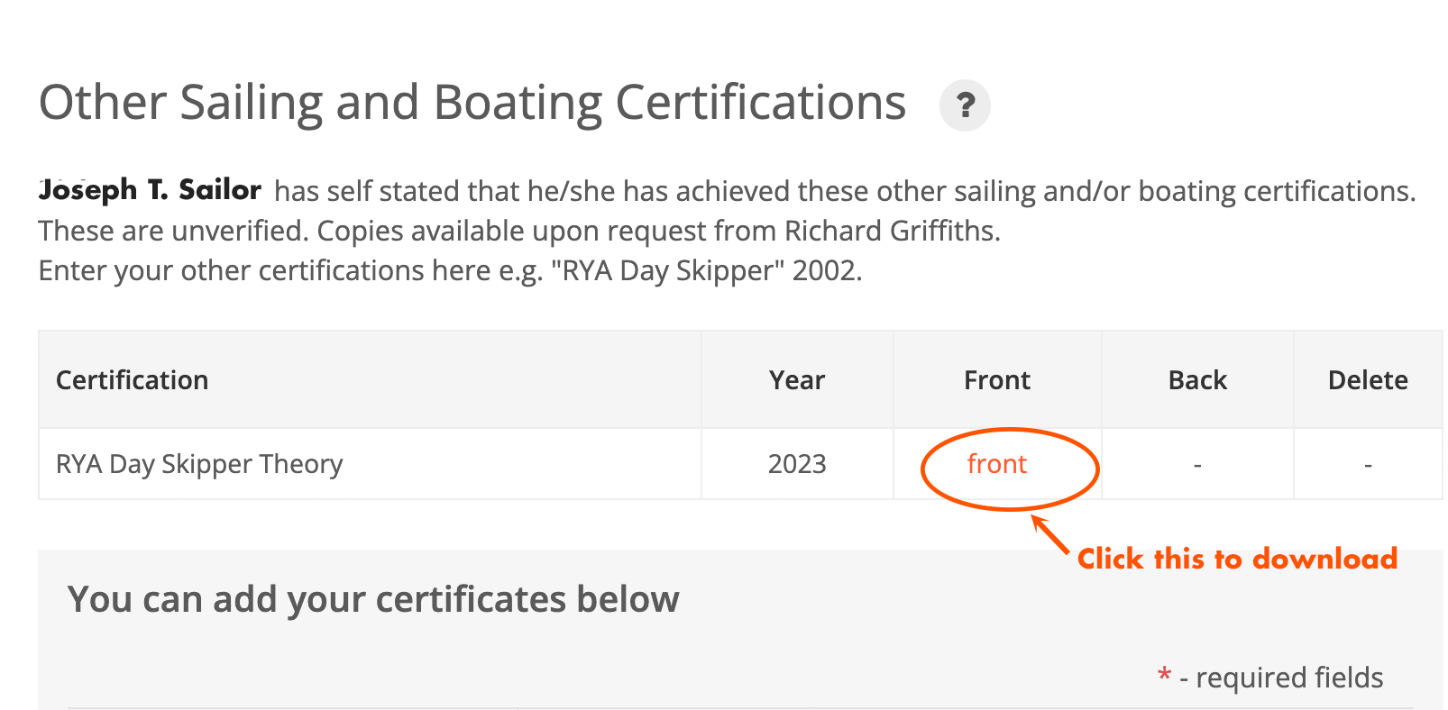 If you have passed the NauticEd RYA Day Skipper theory course online, your certificate is listed under your Resume page (go to your home logged in page www.nauticed.org/my to access your resume) at the bottom of the page under other certifications. Keep in mind this is the theory passed portion only. To gain the full RYA Day Skipper Certificate you still need to complete the practical at an affiliated RYA School.